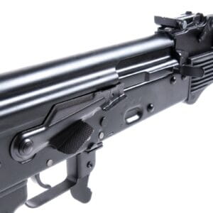 Karabinek w polimerowej wersji. Wyposażony we frezowaną boczną szynę umożliwiającą montaż optyki – szyna nitowana do komory zamkow