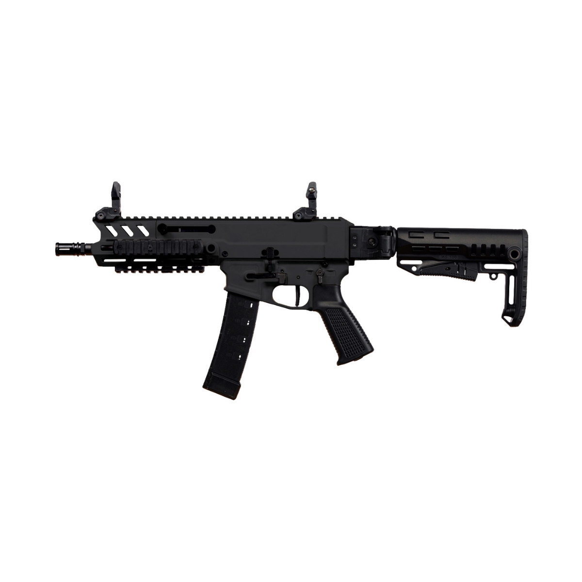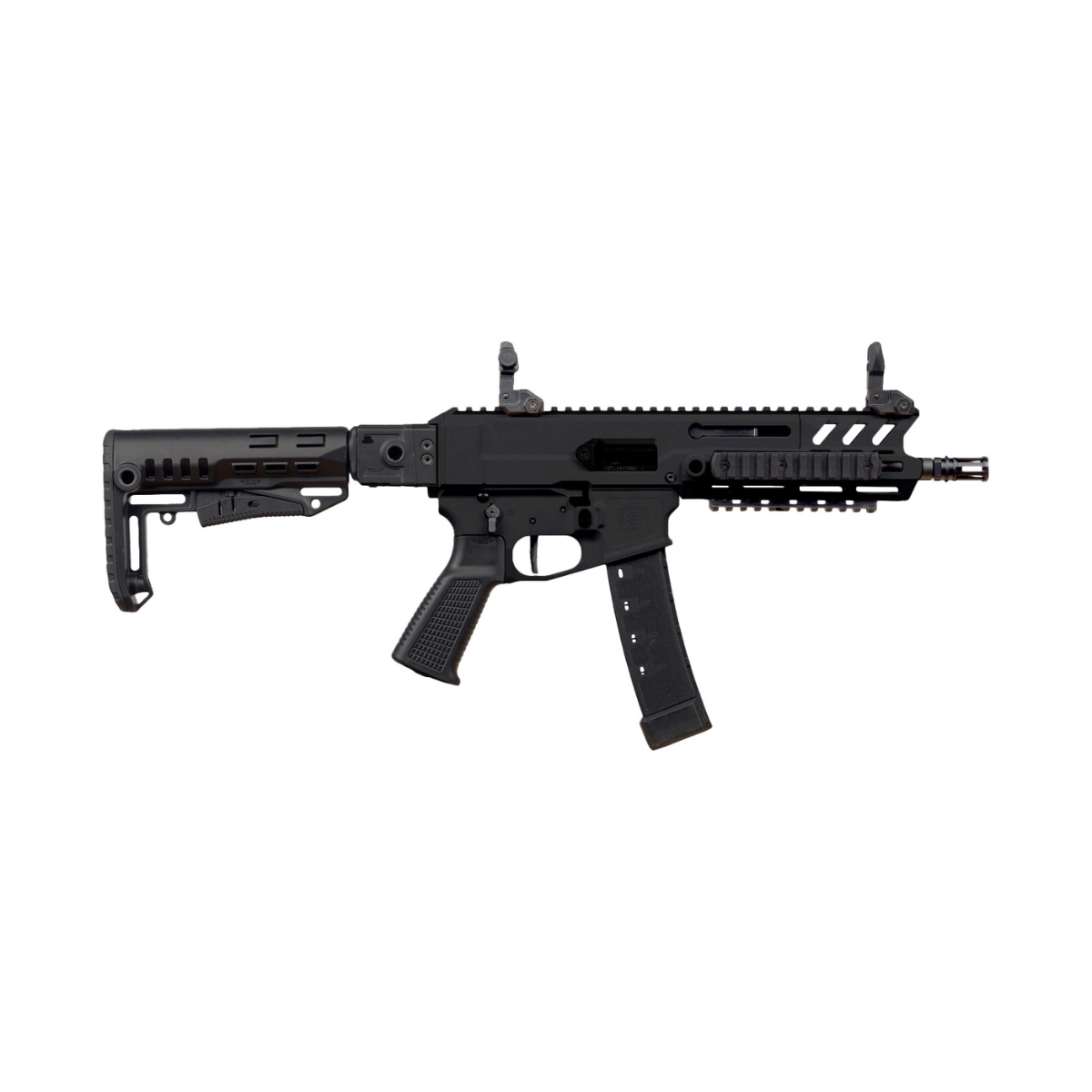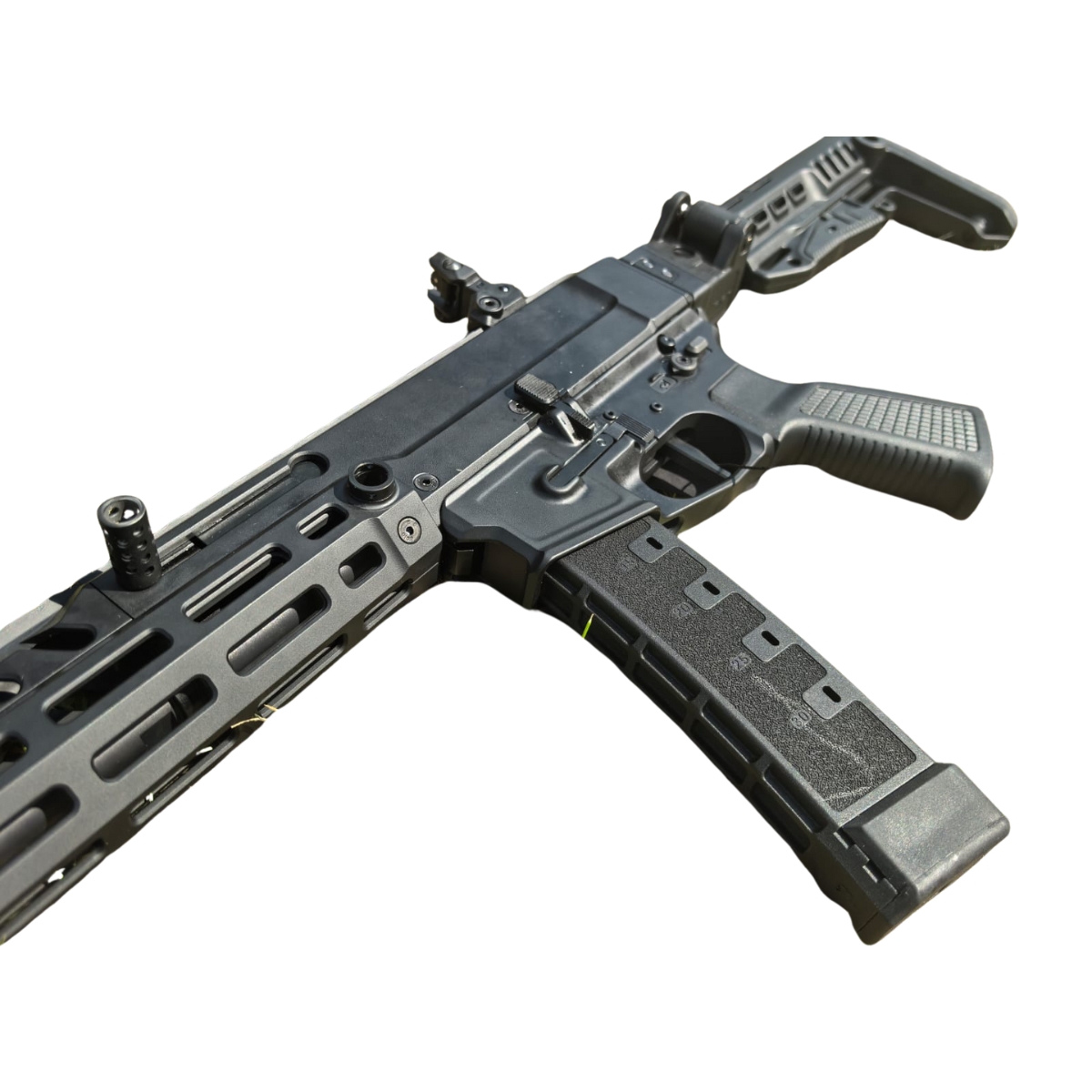 Zastosowane materiały i komponenty gwarantują wysoką trwałość, nawet przy intensywnej eksploatacji – testy wykazały ponad 35 000 strzałów bez istotnych uszkodzeń mechanicznych. Broń została wyposażona w obustronne manipulatory.
