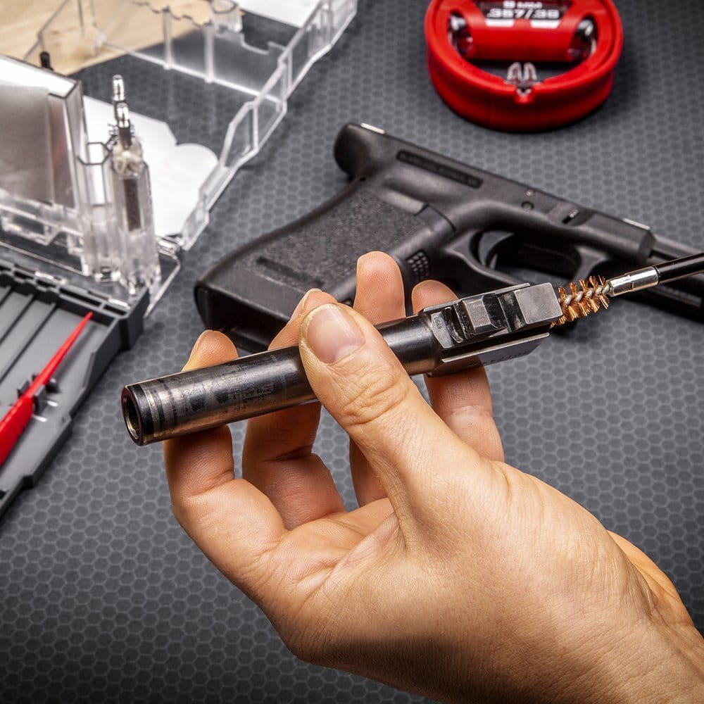 Wycior Bore Boss® umożliwia szybkie wyczyszczenie lufy po każdym strzelaniu.