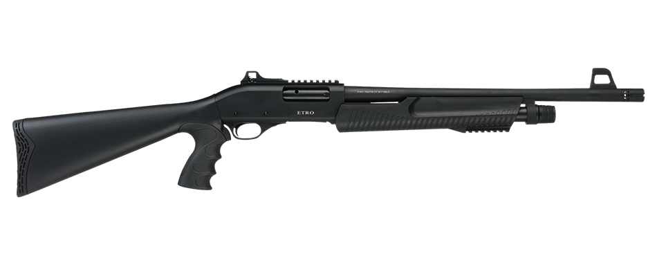 Strzelba gładkolufowa typu pump-action.